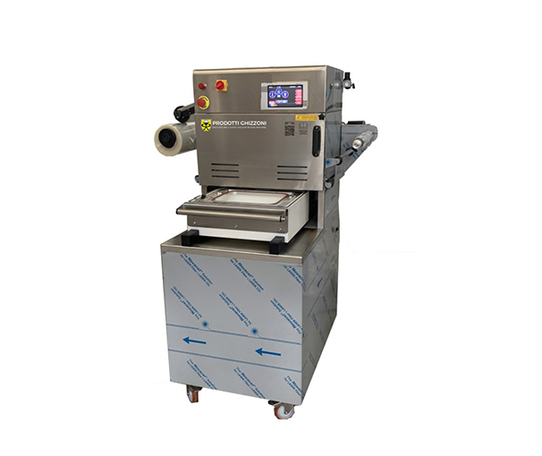 Le termosigillatrici di vaschette vuoto gas taglio in sagoma sono realizzate in acciaio Inox 304 e con slitte in plastica alimentare, dotata di pannello comandi digitale composto da 15 programmi memorizzabili e settabili. Permette di termosigillare vaschette con l’eliminazione dell’aria quindi vuoto al 100% e all’immissione del gas inerte ATM. Stampi facilmente intercambiabili e personalizzabili a disegno in base al formato e alle necessità del cliente